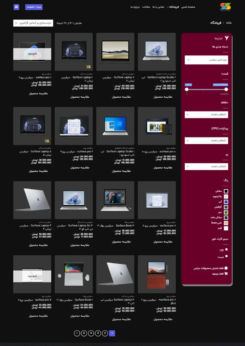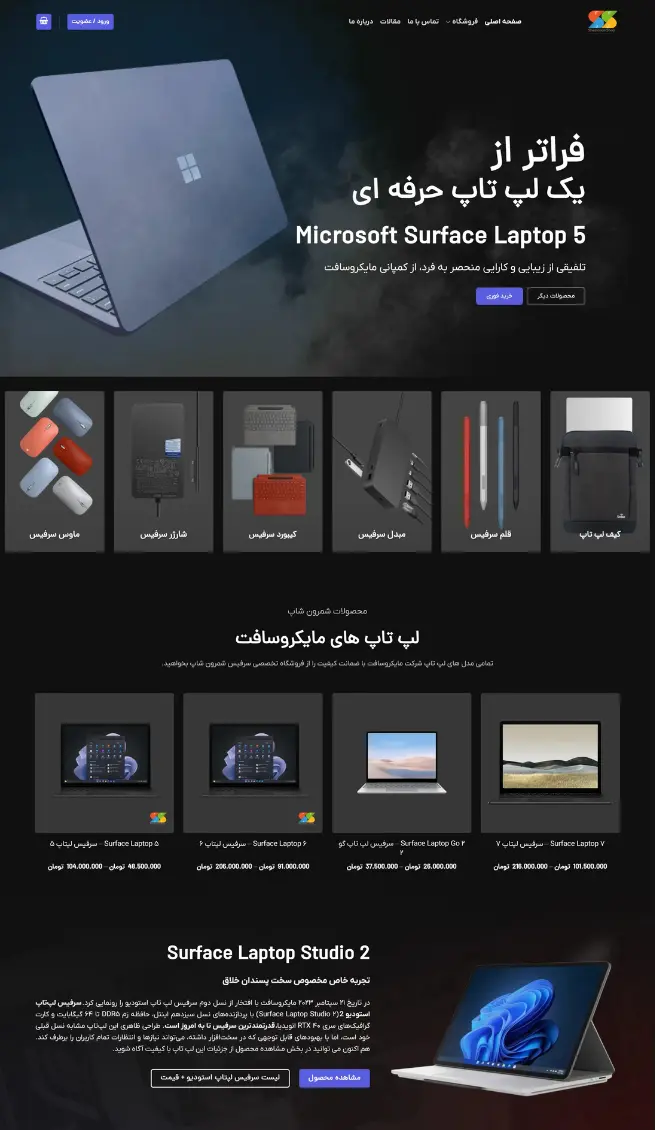 نمونهکار: طراحی فروشگاه تخصصی سرفیس مایکروسافت – شمرون شاپ (Shemrounshop.com)